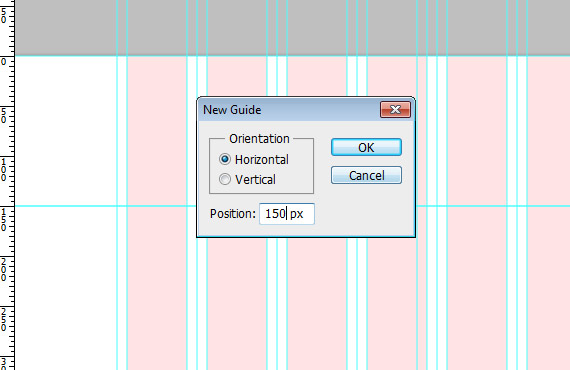 Create new guideline go to View > New Guide and set the position to 150 px, orientation to horizontal.
