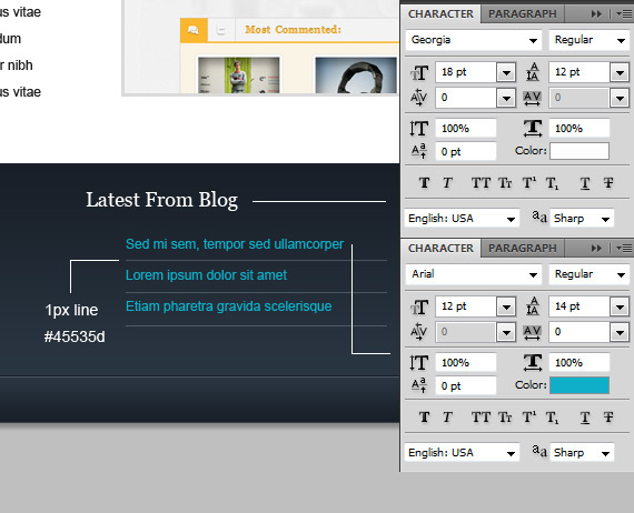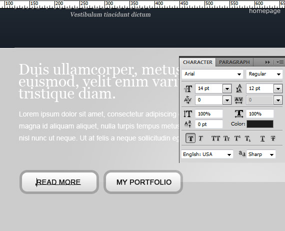 Apply the same layer style as we did into our header and place Place it as shown in the screenshot.