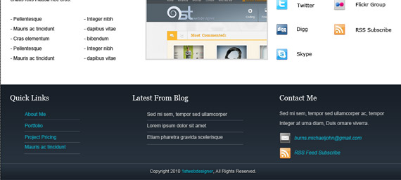 Step 10: Working with Footer(Quick Links, Latest From The Blog, Contact Me)