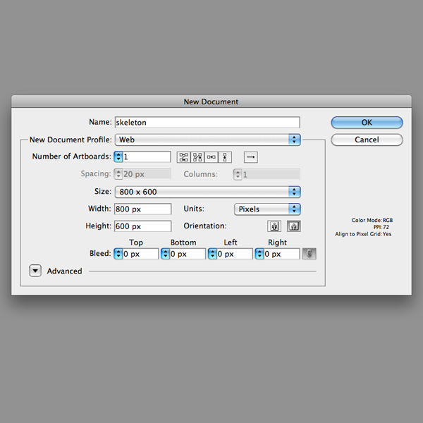 Create an 800x600px document in Illustrator (Cmd/Ctrl + N).