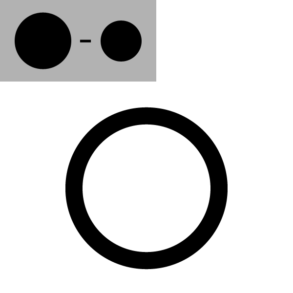 Time for glasses now. Draw a circle with the Ellipse Tool (L), then duplicate and make it smaller. Select the two circles and in the Paths Elaboration panel, click the Minus Front button to obtain the final shape.