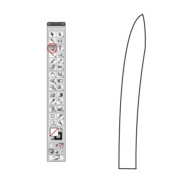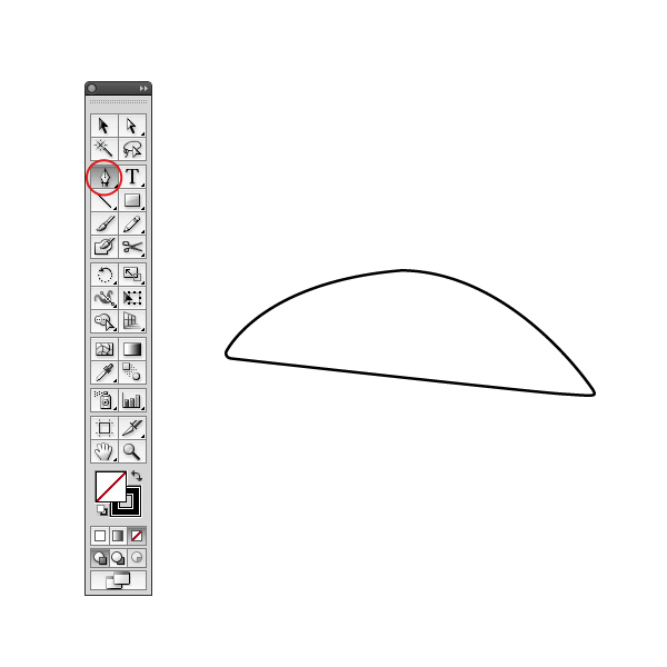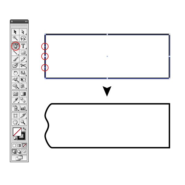 To create the first part of the band draw a rectangle, select the Add Point Pen Tool (+) and add three points on the left side. Then convert the points to curves and adjust them like below. If you want to do a really precise work, just create the first curve, then subtract a rectangle from the shape to crop it. Duplicate, reflect and merge the two shapes with Pathfinder panel, done.