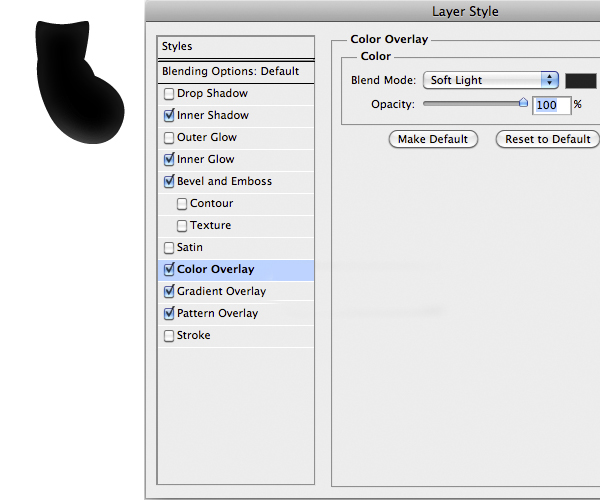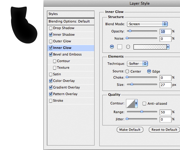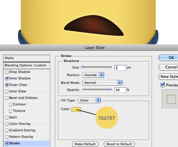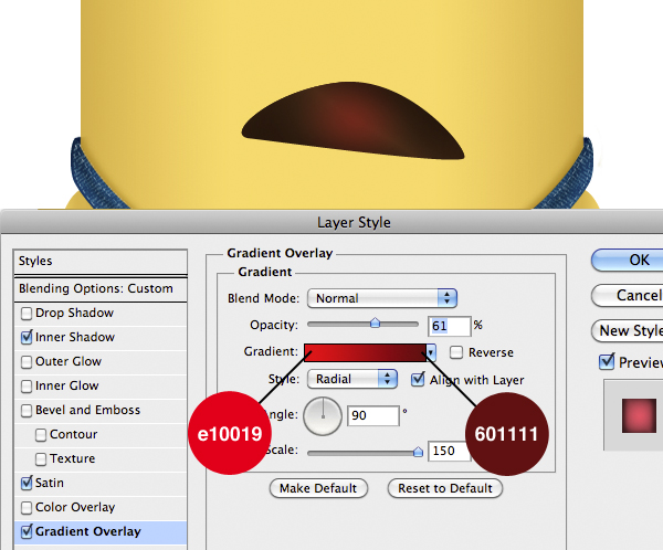 Import the mouth and add the following Layer Style and set the blending mode to Lighten.