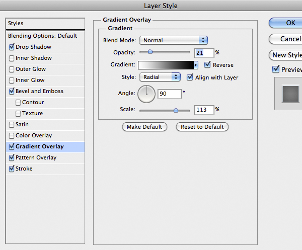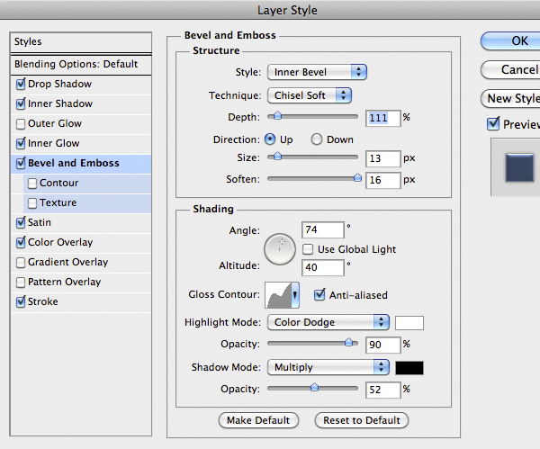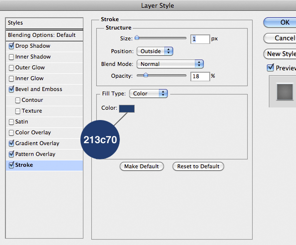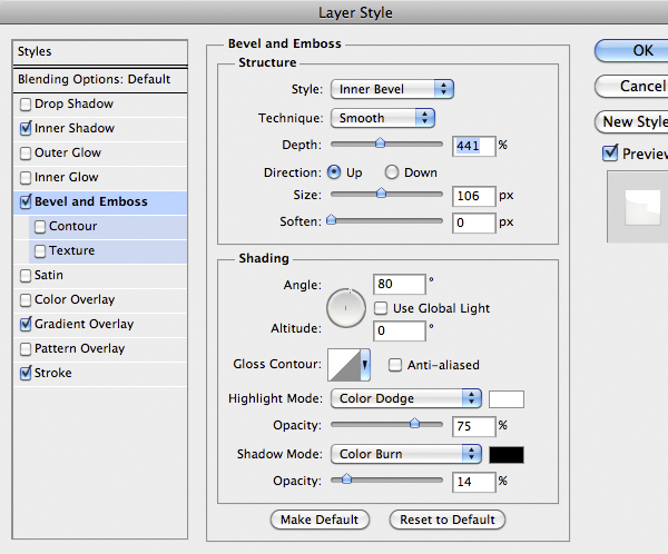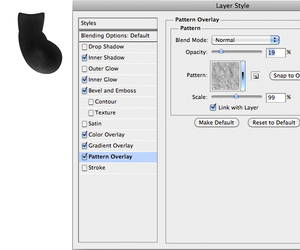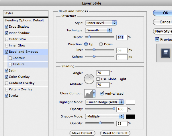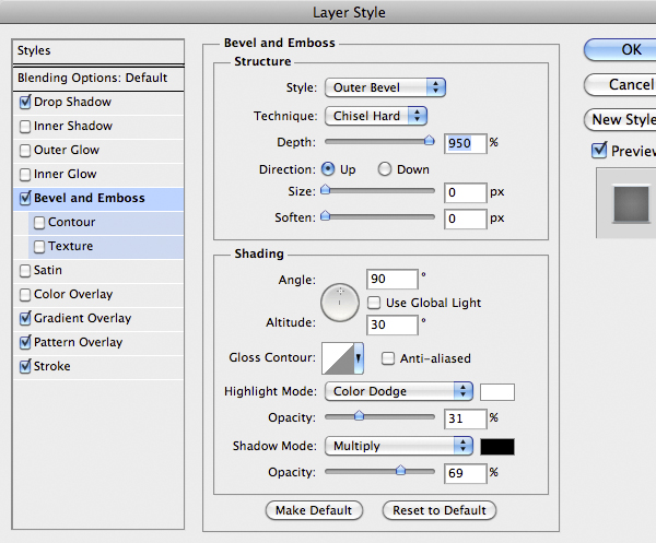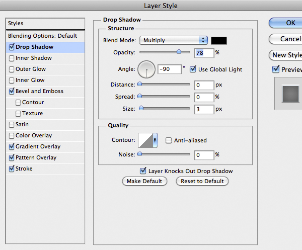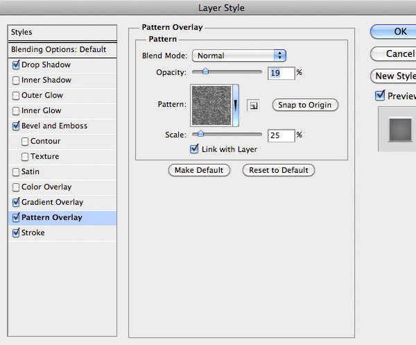 Once finished use this Layer Style below. A good thing is to rotate the texture to give a more realistic looks, remember to unlock the mask from the layer by clicking the little icon between thumbnails in the layer.