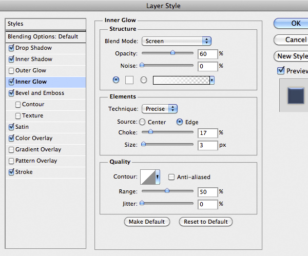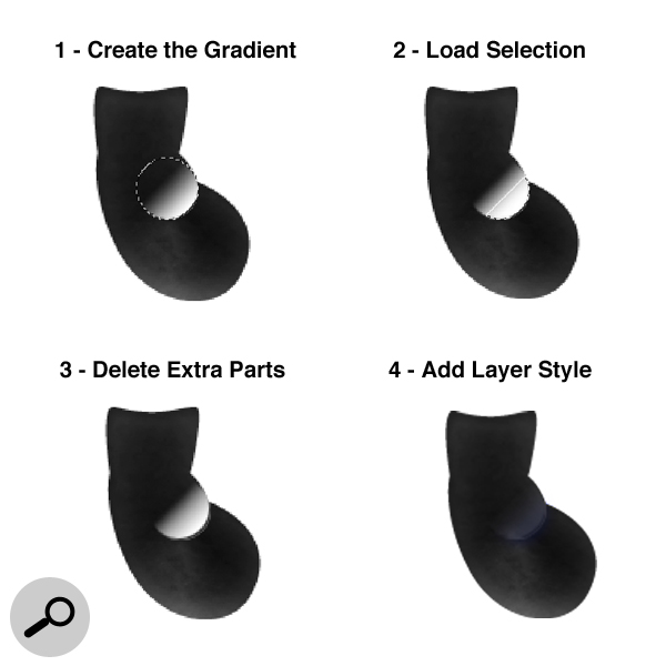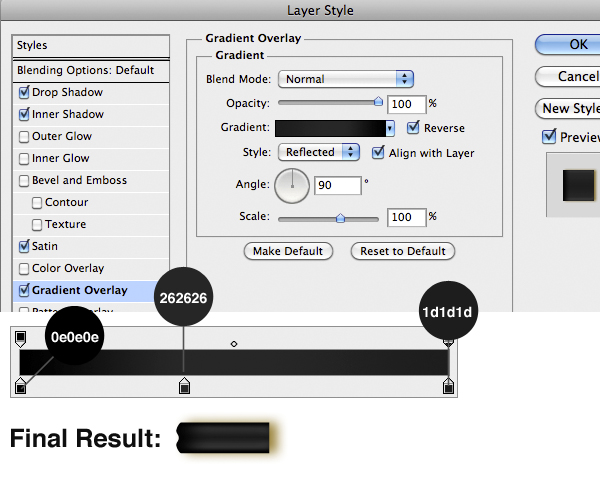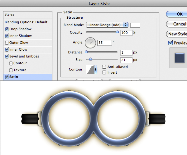 Now let’s style the round shape of glasses. Import it and add this Layer Style. Finally import the little spheres and add the same style, just hold the Alt key and drag & drop the Layer Style icon in the spheres layer.
