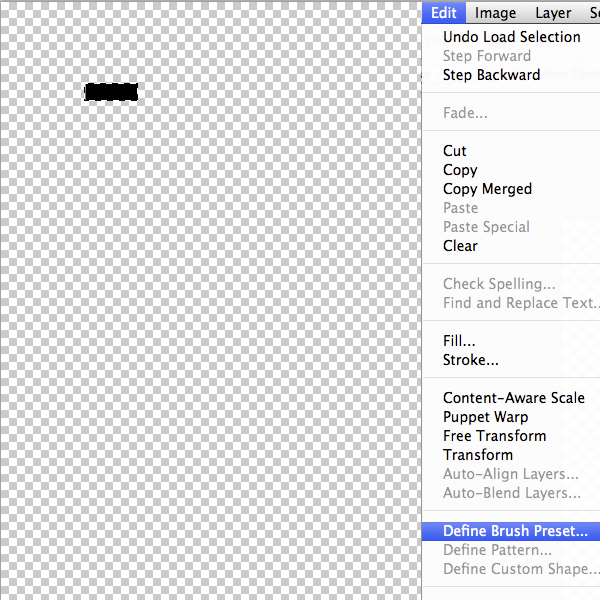 A very nice suite for a minion, but something is still missing. The string and the pockets. To create the string we need to define a special brush that follow the direction of a specific path. With the Rectangle Tool (U) draw a little rectangle, then hold the Alt key and click on the eye icon of the layer to show only the rectangle. Rasterize the shape, then load the layer as a selection by Cmd/Ctrl + click on the icon in the thumbnail, next in the Menu Bar select Edit > Define Custom Brush, call it "string" then press Ok to confirm.