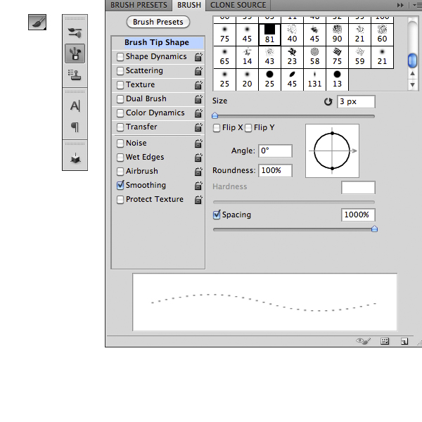 Select the Brush Tool (B). Open the Brush Panel by pressing F5 or in the Menu Bar select Windows > Brush. look for the brush created in step 33. Then set the parameters as below. Finally set the foreground color to white.