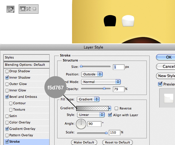 Import the big pocket from Illustrator, give it the Layer Style as below and draw another string. If you want you can add a very soft drop shadow and stroke to the string to emphasize details.