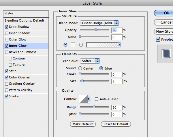 Merge the two finger layers by selecting in them in Layer Panels (Hold Cmd/Ctrl to select multiple layer) and pressing Cmd/Ctrl + E. Decrease opacity to about 40-60%. Finally add this Layer Style to the finger. Duplicate and reflect the hand and the finger. Keep organized the layers by grouping them.