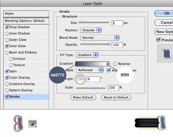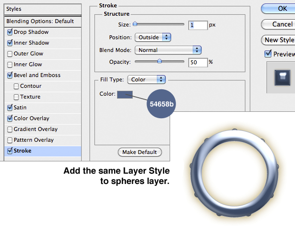 Also import the metal band’s part and add the Layer Style as image below. Then add a new layer and paint some white with the Brush Tool (B).