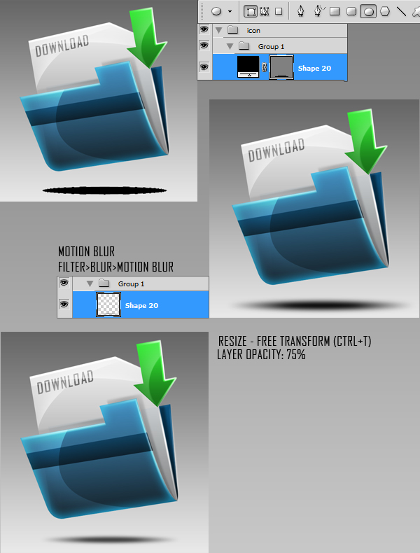 Icons are an important part of most interactive and web design. While icons are small, they can often be challenging to create. In today’s tutorial we will demonstrate how to create a download folder icon using different shapes and reflections in Photoshop. Let’s get started!