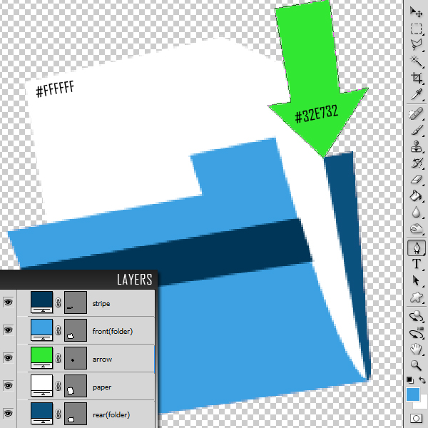 Once you have finished drawing your folder, go ahead and add the paper and arrow as shown. You should now have the following 5 layers. Each shape will be in its own layer. Be sure to give each layer a unique name.