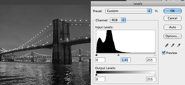 Now open the bridge file, then go to Image > Adjustments > Levels to brighten the image.