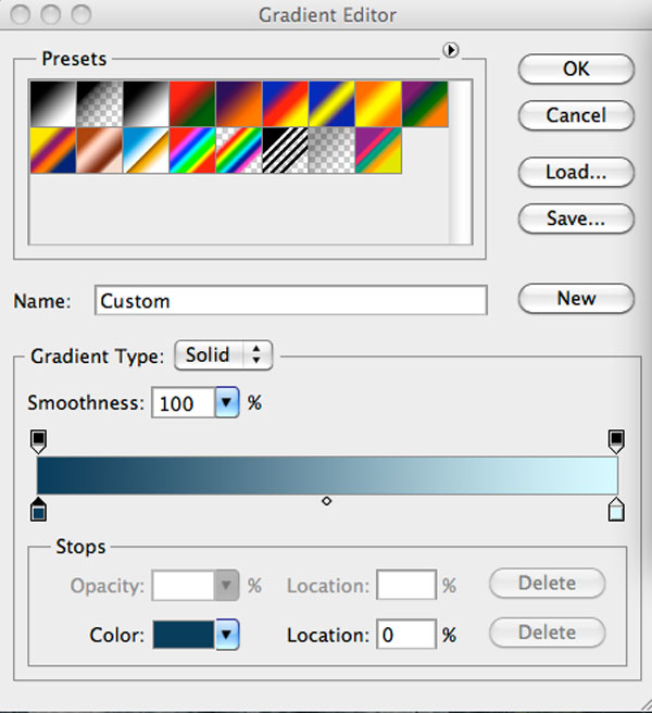 Here we’ll add the final details. First create an Adjustment Layer (Layer > New Adjustment Layer > Gradient Map.). Use the following configurations and set its blending mode to Soft Light.