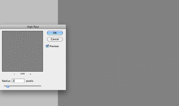 Create a new merged copy of your image using Command/Ctrl + Shift + A, Command/Ctrl + C and Command/Ctrl +V. Go to Filter > Others > High Pass and use the configuration below. After that set the blending mode to Hard Light. This effect will sharpen the image. Now you’re done!
