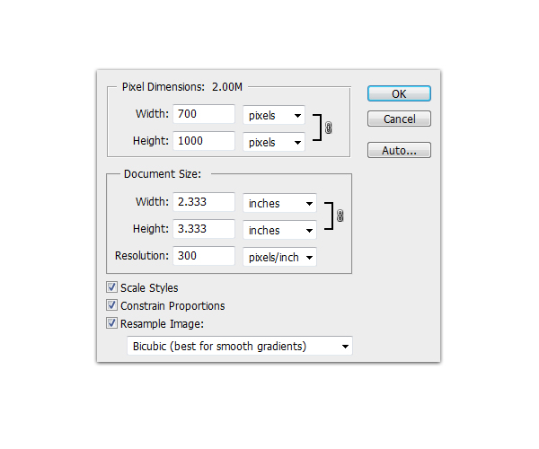 Let’s start by creating a new file with a dimension of 700×1000 px and a resolution of 300 ppi.