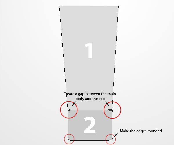 Next, using the Pen tool (P) create two main shapes on two separate layers: (1) Main body of the shampoo bottle then name this layer as “Main” and (2) The cap of the shampoo bottle and name this layer “Cap”, just like as shown below.