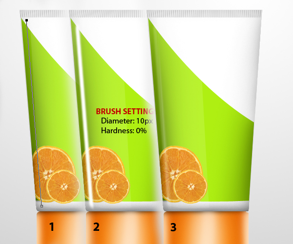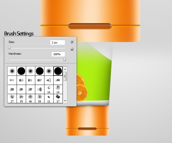 Using the same brush settings we used for the cap, color the bottle just like as shown below. Adding darker colors on both sides of the bottle makes an illusion that the shape curves away from you giving a final effect of a rounded bottle.