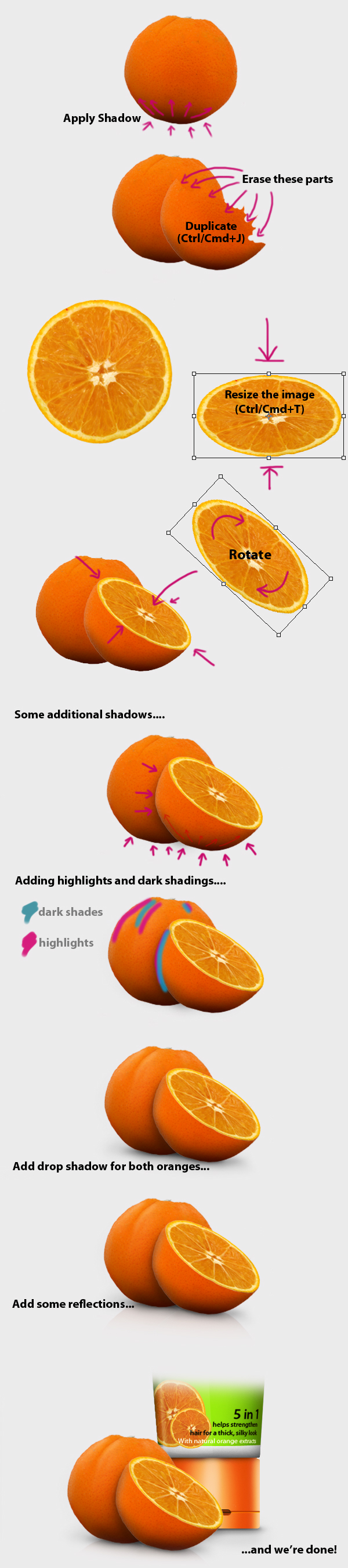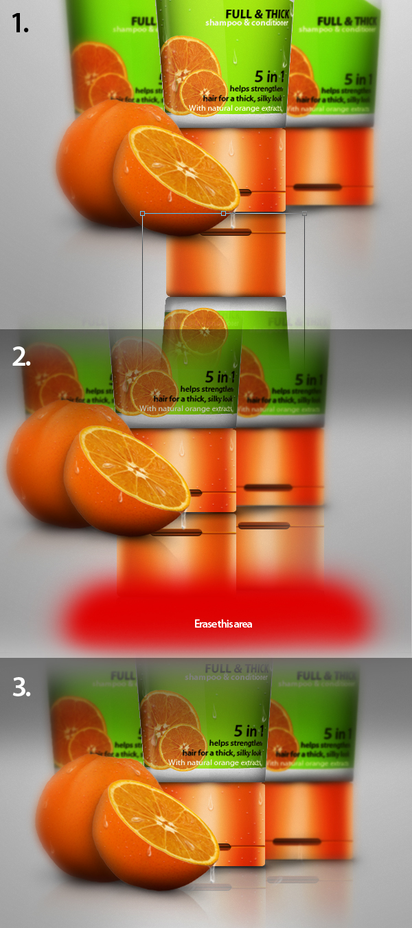 Next is to add the some oranges sitting beside the bottle. This will add the “fresh look” we want to achieve for our product. To do this follow the step-by-step procedure below.