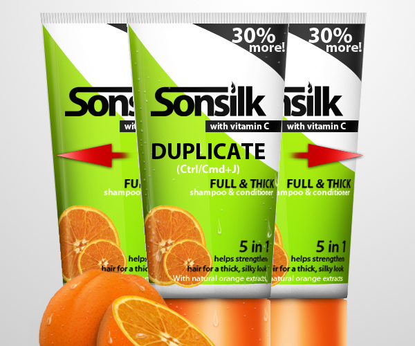 Once the layers have been merged, place two duplicate shampoo bottles on both sides of the original bottle like as shown below.