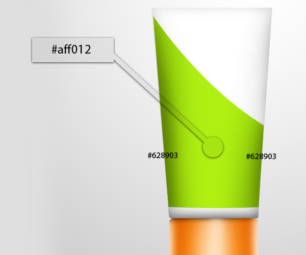 Next using the Paint Bucket tool (G) fill the entire selection with color #aff012. Then using the Brush tool (B) set to medium hardness, apply color #628903 on both sides of the bottle just like as shown below.