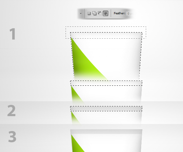 Next is to add the “sealed” portion of the bottle. For this procedure, we’ll start first by placing the base color. To do this, press Command/Ctrl + Click the “Main” layer’s thumbnail to activate the selection marquee around that object. Next, by using the Rectangular Marquee tool (M) set to Intersect with Selection, make a rectangular shape just like as shown in Fig. 1. Once you released your click with the left mouse button, it’ll automatically intersect the two main shapes you made leaving only the middle/intersected parts, Fig. 1. Next, using the Paint Bucket tool (G), fill the entire selection with color #dddddd, Fig. 2. The final effect should look like Fig. 3.