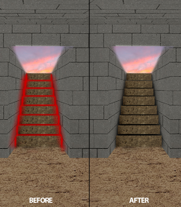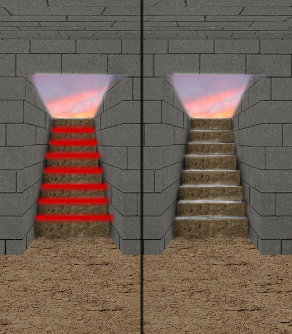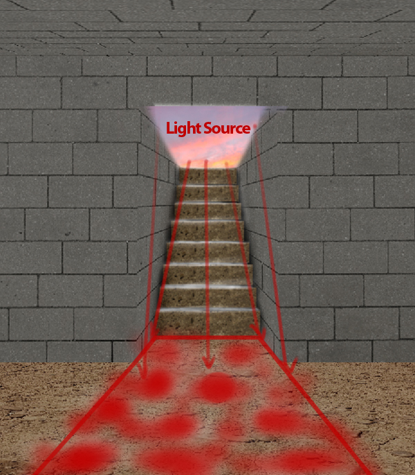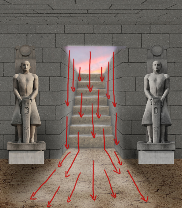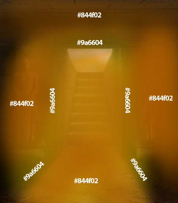 Next, using the Brush tool (B) paint the cast of light coming from the environment (light on the walls and stairs), and the one coming from our source of light, which extends to the floor of our tomb.