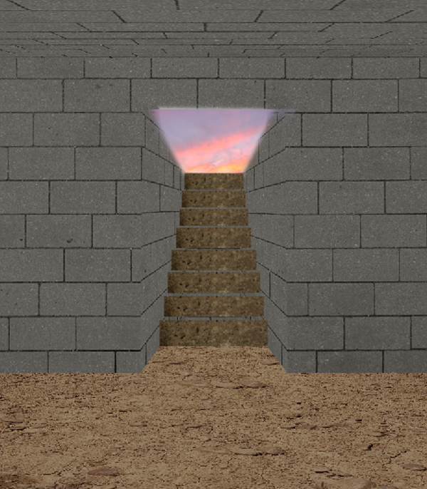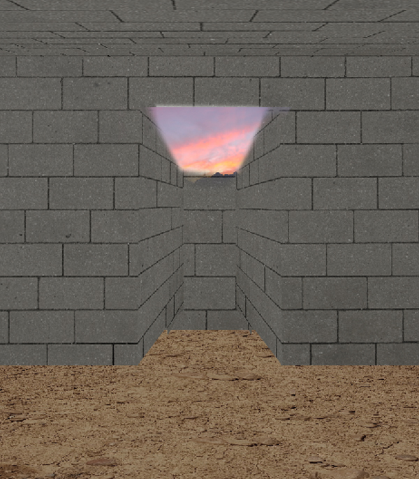 Next, using the Wall.jpg, I cut then reshape, base on the perspective of our scene, a small rectangular shape of the image then placed it on the upper portion of the opening.