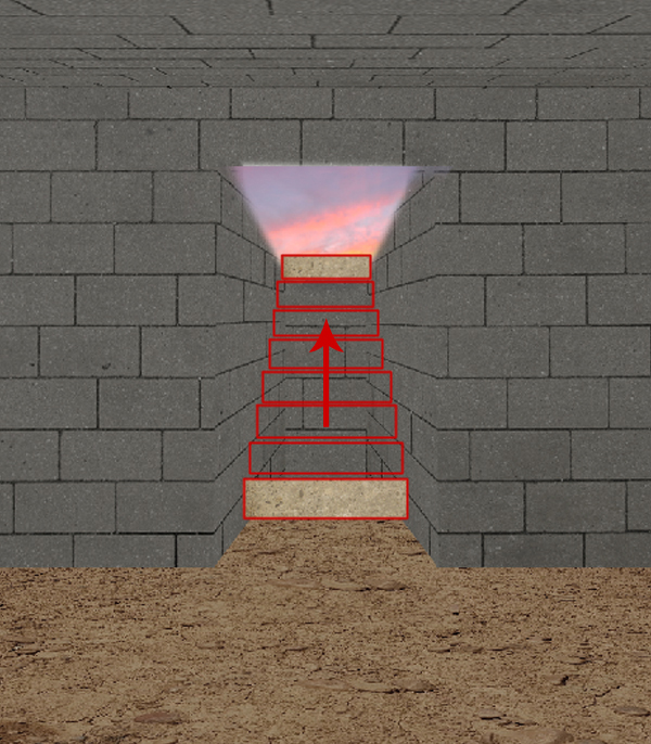 Next is to add the stairs going to the tomb. To do this, open the Concrete.jpg then cut rectangular shapes out of it just like as shown below. Make a set of these shapes from the bottom up to the main opening of the tomb. Make sure to decrease the size gradually as you go up through the stairs, you can do it by pressing Command/Ctrl + T to activate the resizing handles.