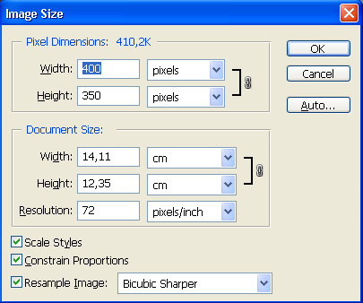 Fire up Photoshop and create a new document. Make it 400px wide and 350px high.