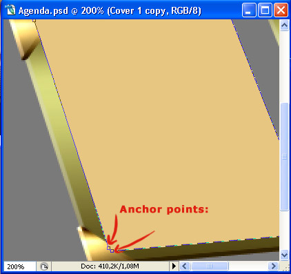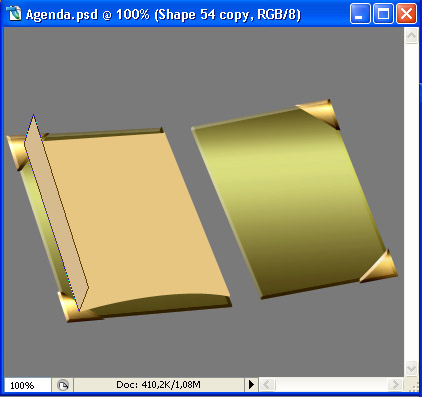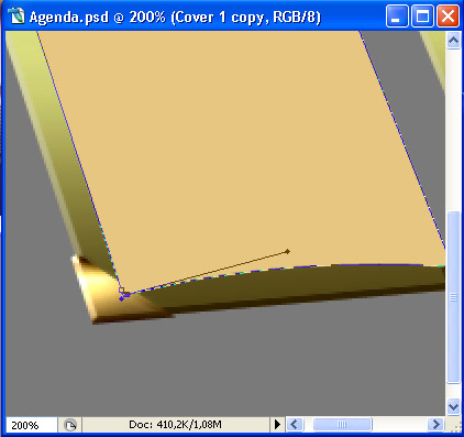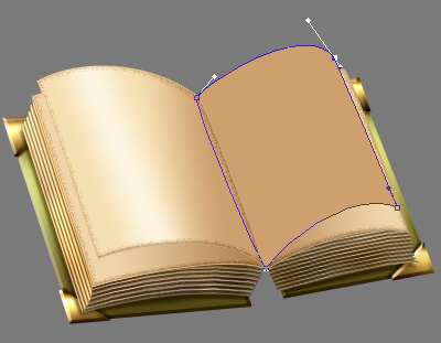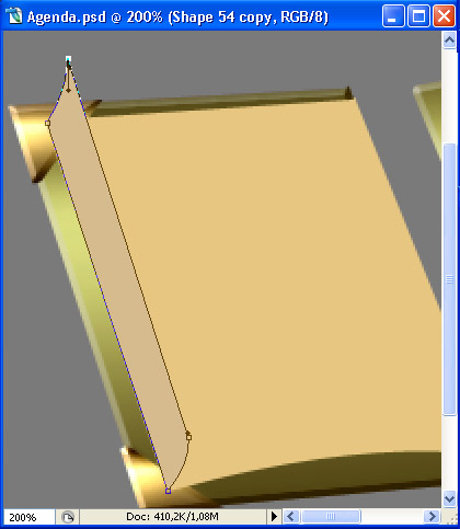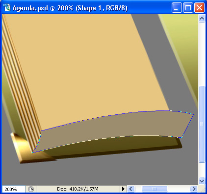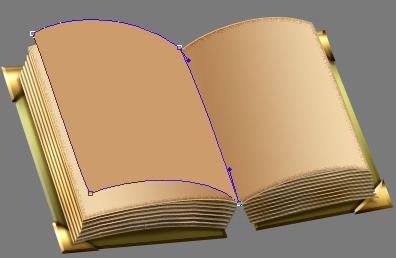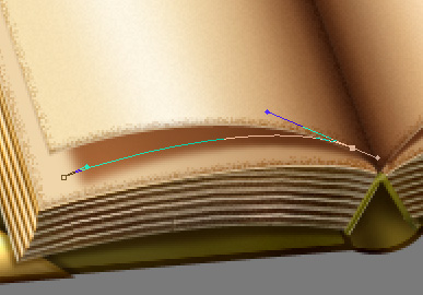 Now we’ll work on the flipping pages. New layer, above all your others. Set Foreground color to #cc9c6a and taking the Pen Tool (P) with same settings as before, draw the shape of the first flipped page.