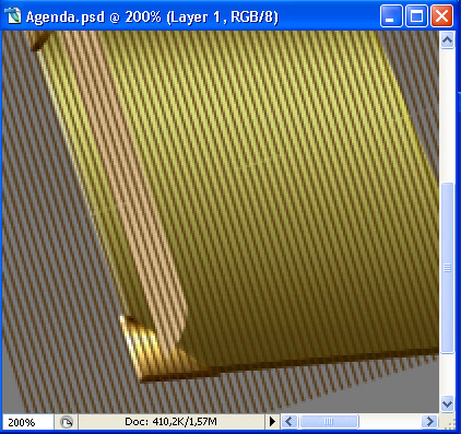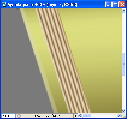 Obtain a selection of the bottom side shape layer (the one we just created before) and then go to Select > Inverse, and press Delete. Next, make a new layer above it and do just like before: obtain a selection of it (of the lines pattern of course) and then on the newly made layer fill the selection with #a59d86 and, you know the drill. Move the lighter color a bit downwards, so that you get something like this.