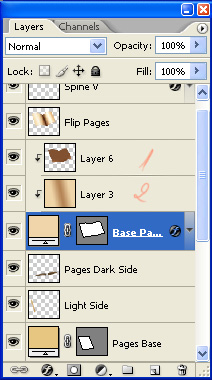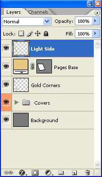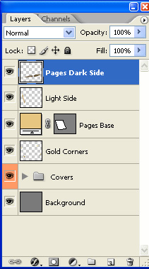 Merge the resulting layer with the "Pages Dark Side" one. Now your Layers Palette should look something like this.