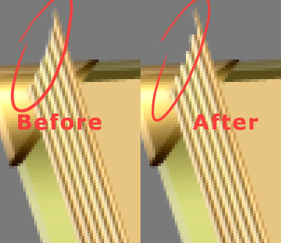 To make it even better, take the Eraser Tool (E) and set it to a hard, round brush of about 1-2px in size, and start erasing slightly at the top of the "Light Side", like this.