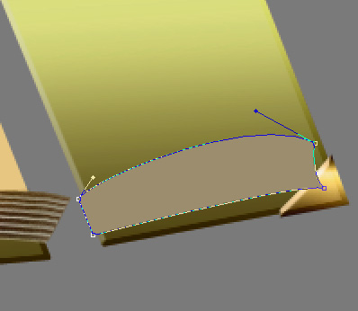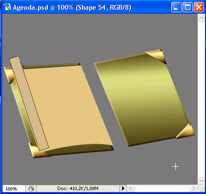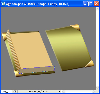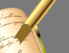 Okay now let’s make the second part of the spine (the cover one you know?) Set your Foreground color to #544a15 and taking the Pen Tool set to Shape Layers, create a new layer under all your other book-related ones (so that this new layer will be the first one above the Background layer). Draw a shape like this.