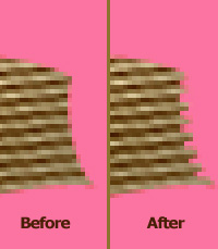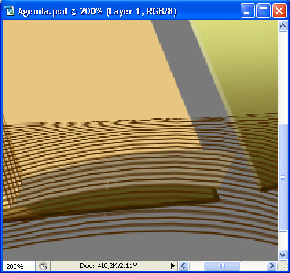 Good! Now as a final touch, zoom in to around 400-500% and take the Eraser Tool (E), set it to a hard, round brush, size about 1-2px and erase slightly around the edge of the pages. Here is a comparison shot (I used pink background color to obtain contrast, for better visibility).