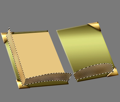 Okay, create a new layer and make sure it is placed just above the "Gold Corner" layer. Set it to Multiply and then Command/Ctrl + click on the layer thumbnails of the Pages Dark Side & Light Side layers in the Layers Palette to obtain their selection, like this.