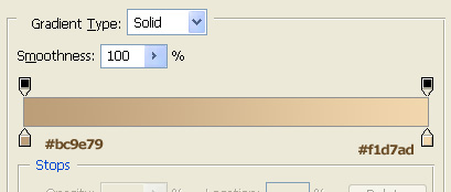 Next, name this layer "Flip Page Left" and right-click on the "Base Pages" layer, choose Copy Layer Style, then go back to your "Flip Page Left" one and right-click > Paste Layer Style. Then create a new layer above it and transform this new layer into a Clipping Mask to the "Flip Page Left" one, and set your Foreground color to #f5e0b2 and you Background one to #cea06e and taking the Gradient Layer (G) set it to Linear Gradient, Foreground to Background and drag like so.