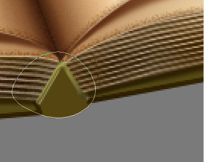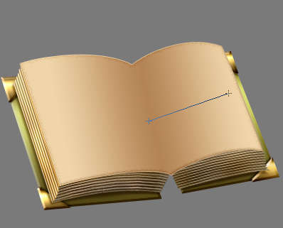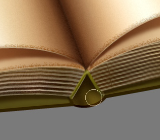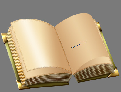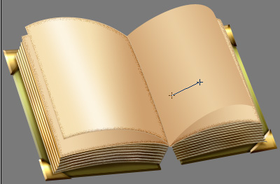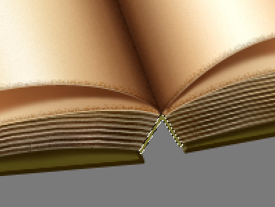 Nice. We will now take care of the spine, after which we’ll add the mandatory text on the pages. Okay first thing’s first, spine time. Set your Foreground color to #7e7633 and take the Line Tool (U) and setting it to Fill Pixels mode and a Weight of 3px, drag to create a sort of, inverted V, like so (I selected it in the image below so that it’ll be more visible for you).