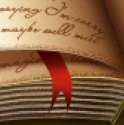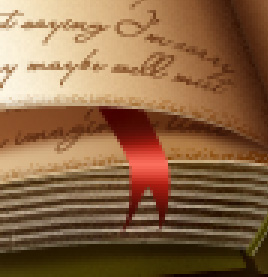 Now it’s safe to Command/Ctrl + click on the Bookmark shape layer and its clipping mask and then press Command/Ctrl+E to merge them. You might have to re-name the layer to "Bookmark" again and perhaps use "Release Clipping Mask". Now Command/Ctrl + click on the Bookmark layer’s thumbnail in the Layers Palette to obtain its selection. Then create a new layer and move it under the Bookmark one, name it "Shadow Bookmark". Set the layer to Multiply mode and lower its Opacity to about 80%. Set your Foreground color to #480b04 and fill the selection with the foreground color, then you can deselect. And go to Filter > Blur > Gaussian Blur of about 2,3. Okay, and now, magic! We’re done with the book itself! Congratulations! This is what it should look like, or close.