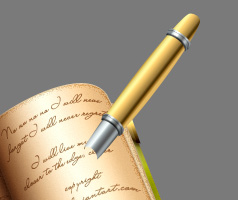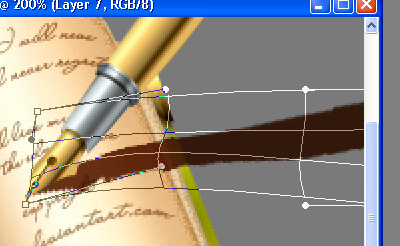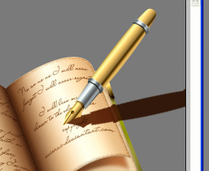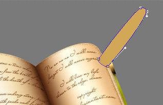 Much better, isn’t it? Nice, now you can freely delete all the shadow that goes outside of the boundaries of the book covers & all. Nice, now let’s take the Blur Tool (R) and with the same settings we used previously (only lower the brush size to about 30px), blur nicely on our shadow, blurring more the farther from the tip it is (you remember what we talked earlier about shadow fuzziness yes?) The aim is to get something like this. Now name this layer "Shadow Pen” and we’re done!