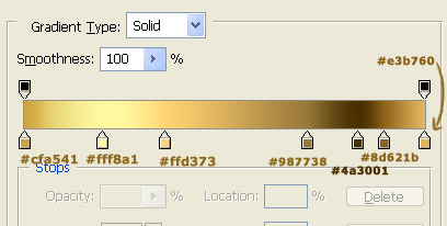 Name the layer "Spine Base". Then, make a new layer above it and transform this new layer into a Clipping Mask. Now, set your Foreground color to #221500 and your Background one to #372705 and take up the lovely Gradient Tool (G). Set it to Foreground to Transparent and Linear Gradient. Then drag to create a shadow effect, like so.
