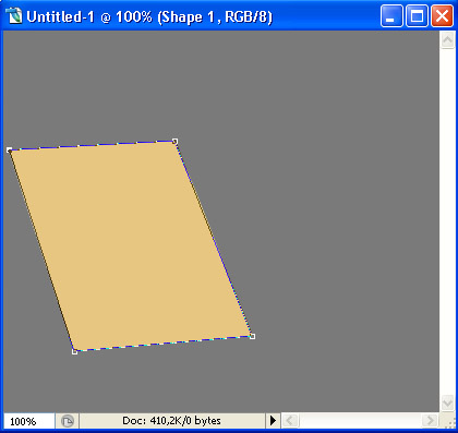 Because you used the Shape Layers setting, you will notice that, when looking in your Layers Palette, the normal layer you created at the beginning of the previous step has been transformed into a Shape Layer, aka Photoshop’s kind of vector! You will also notice a thin gray border around your rectangle. Now THAT is awesome, and you know why? Because now we can transform the shape without losing any quality! So, let’s do just that. Press Command/Ctrl + T to transform, and then holding down the Command/Ctrl key drag the corners as to create a shape similar to this.