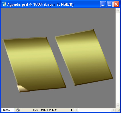 Set this layer to Multiply mode, then set your Foreground color to #815130 and obtaining a selection of the two Flip Pages, fill this selection on the newly-made layer with the #815130 Foreground color. Next, transform it to get a result similar to this.