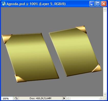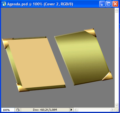 Set your Foreground color to #e7c681 and using the Paint Bucket Tool (G), fill that selection on your "Corner 1" layer. Then press Command/Ctrl + D to deselect. Sweet, now remember that layer style we copied earlier from the "Cover 1" layer to our "Cover 2" one? Paste the same layer style to the "Corner 1" layer. You should get something like this.