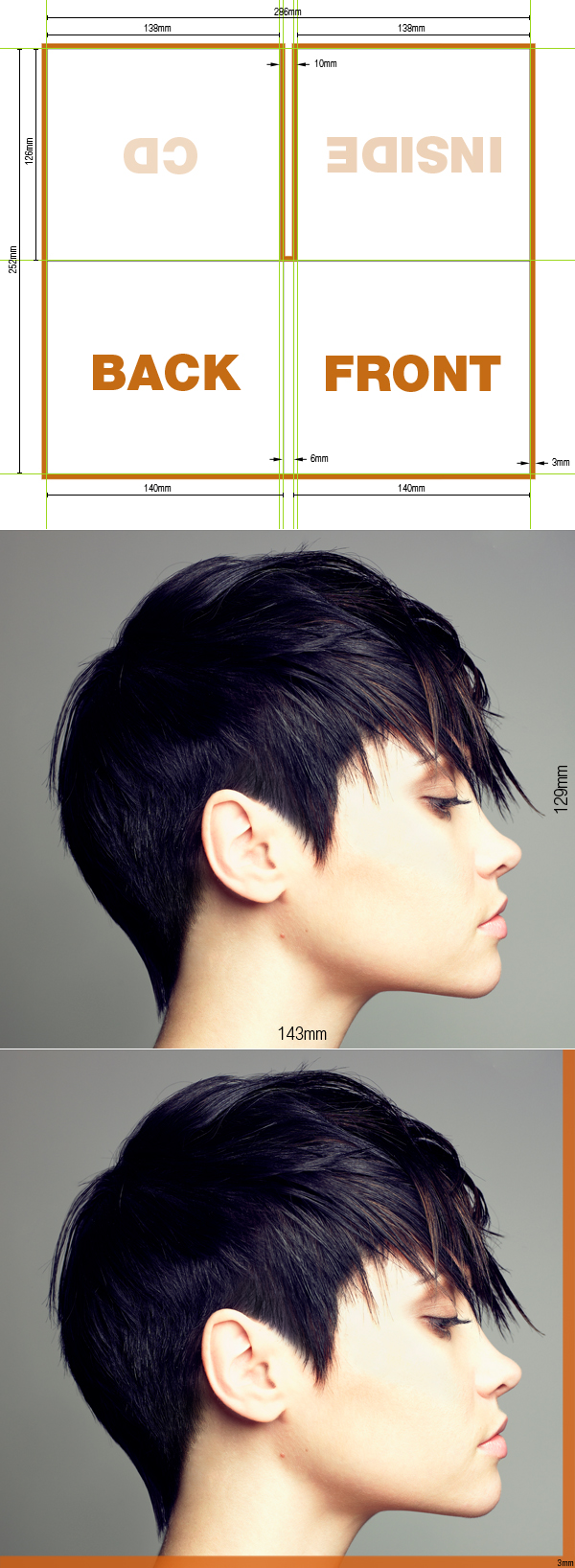 Before we start, it’s good to get the right specification for your CD cover. First image below shows the one I used. The orange line stands for margin that we need to maintain incase there will be some cutting error in printing.