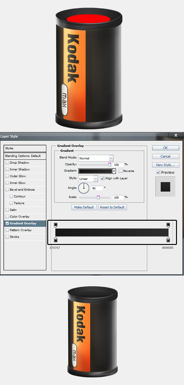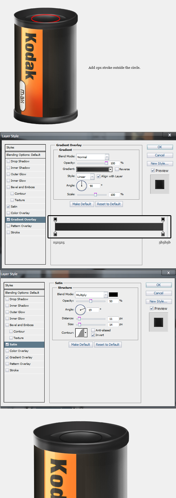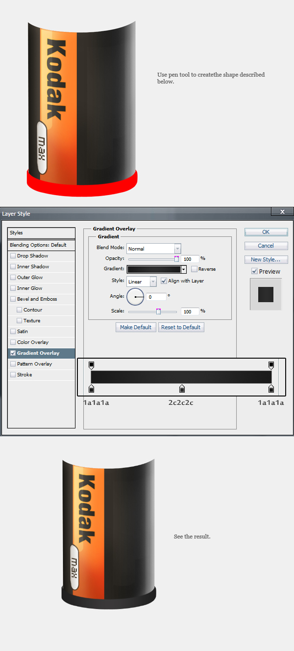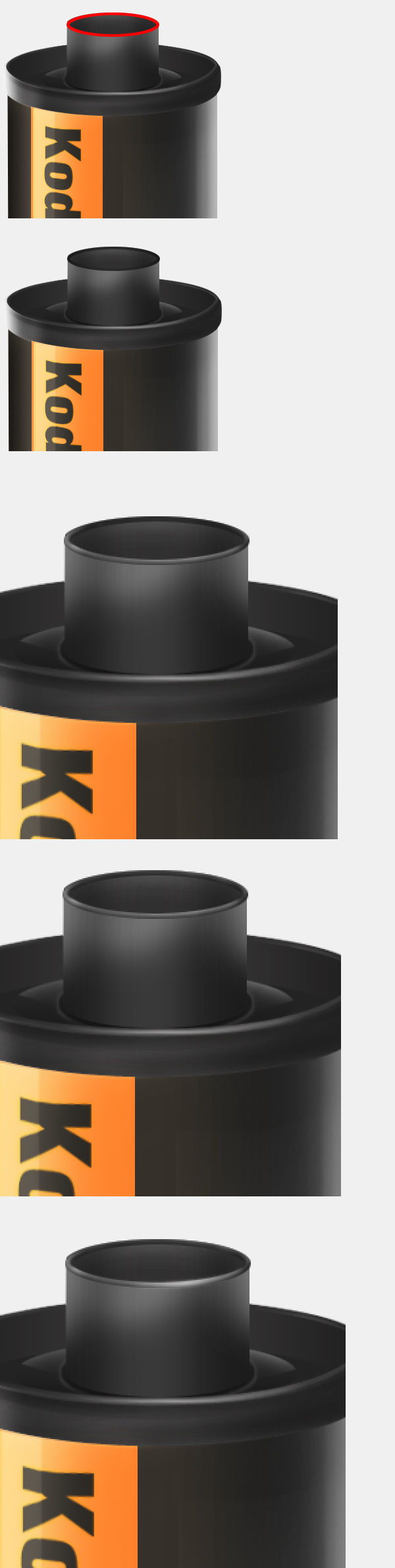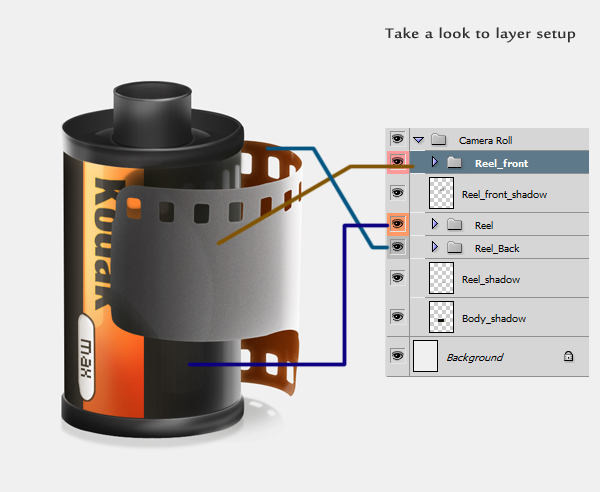 Drawing the back portion of the reel. Use pen tool to create the shape. After that follow the layer style.