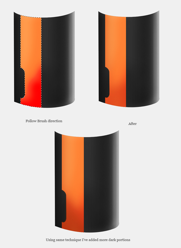 Command/Ctrl + click on the layer thumbnail of ‘Orange’, create a new layer. Take a feathered brush tool, color #e2481d and paint as shown on next image.