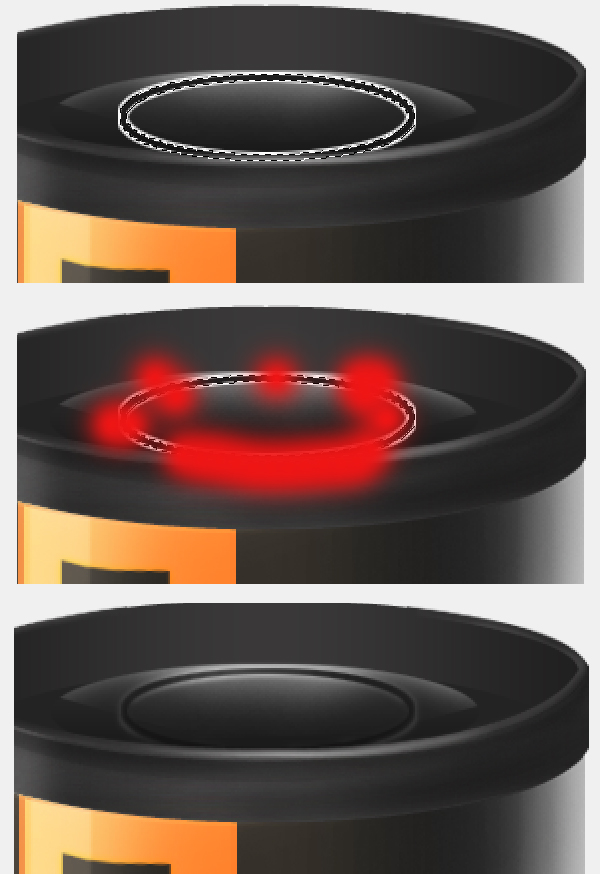 Create a circle above using Elliptical Marquee tool and add stroke of 3px. Then apply the layer style, which we’ve used in step 3. Then using white color and a feathered brush tool add some highlights on it.