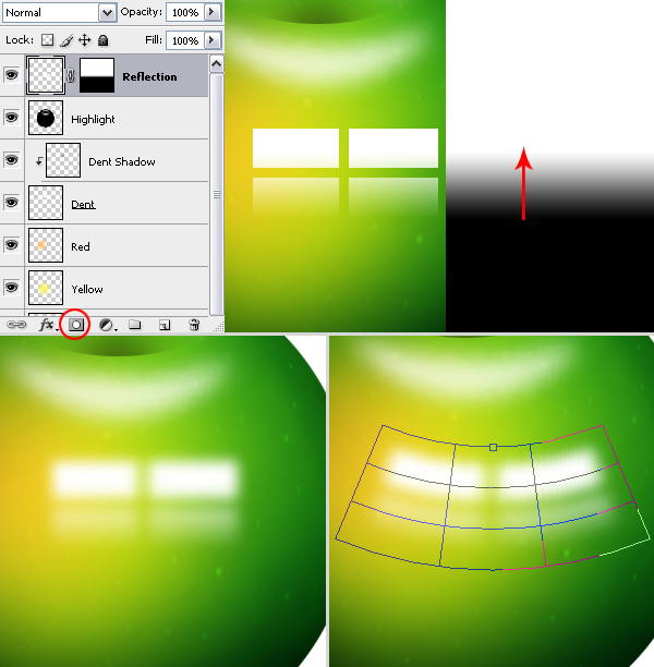 Go to the Layers Palette and add a Layer Mask to the "Reflection" layer by clicking the Add Layer Mask button. Grab the Gradient Tool, set it to Linear Gradient. Fill the layer Mask with the gradient, as you can see in the below image.